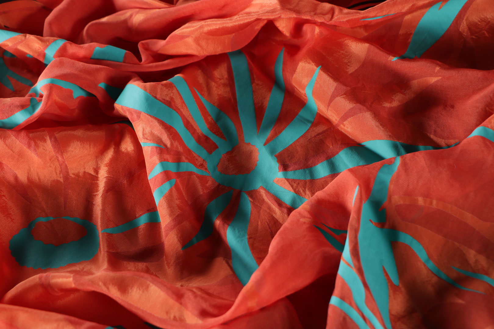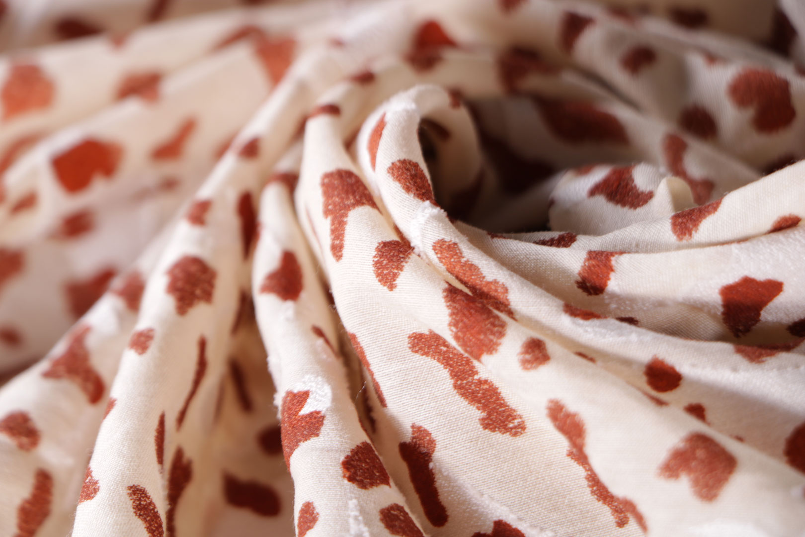 Floral, animal-inspired, and abstract prints interpreted with the distinctive blurred effect typical of chiné. The soft-edged patterns stand out for their vivid and lively hues. -