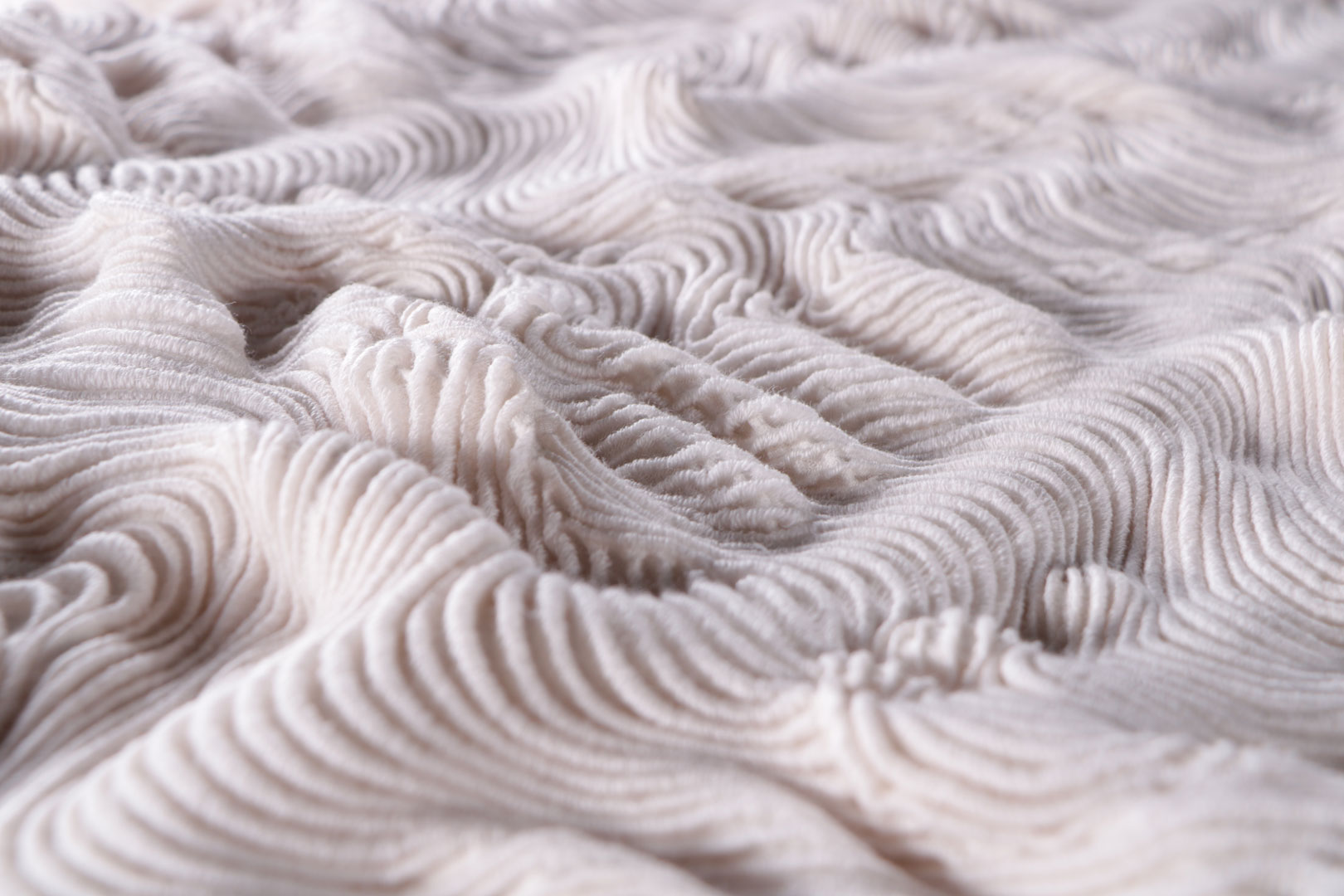 Softer, more enveloping fabrics follow for the coldest months: refined blends of cotton and cashmere, gently brushed for a delicate finish, alongside cotton–cashmere and cotton–silk velvets, offering a warm and fluid hand.