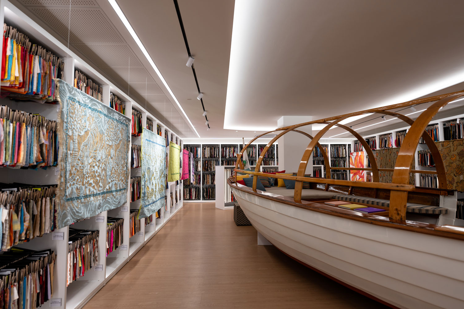 Each fabric that is part of the capsule is an expression of technical and stylistic virtuosity: these include « great classics » that represent the essence of Clerici Tessuto: luxurious velvets characterized by illustrations of outsize natural scenes, precious chiné fabrics with vivid, nature-inspired designs, declined outsize to achieve an effect that turns from figurative to abstract; fine jacquards made on very particular structures, that is, metal nets on which textural designs rich in detail are woven.