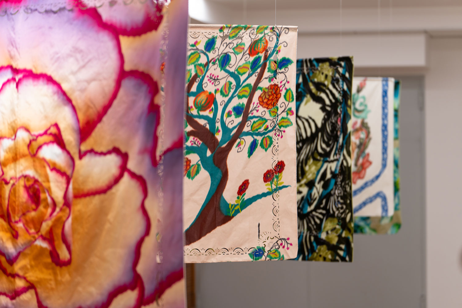 To emphasize its creative value, each fabric has been framed like a work of art by a decoration that recalls motifs found on antique sewing machines, reproduced on the surfaces with techniques such as innovative laser cutting, or embroidery and workmanship integrated into the fabric itself.