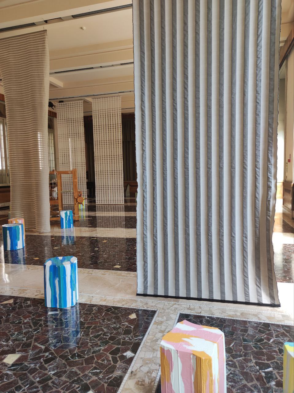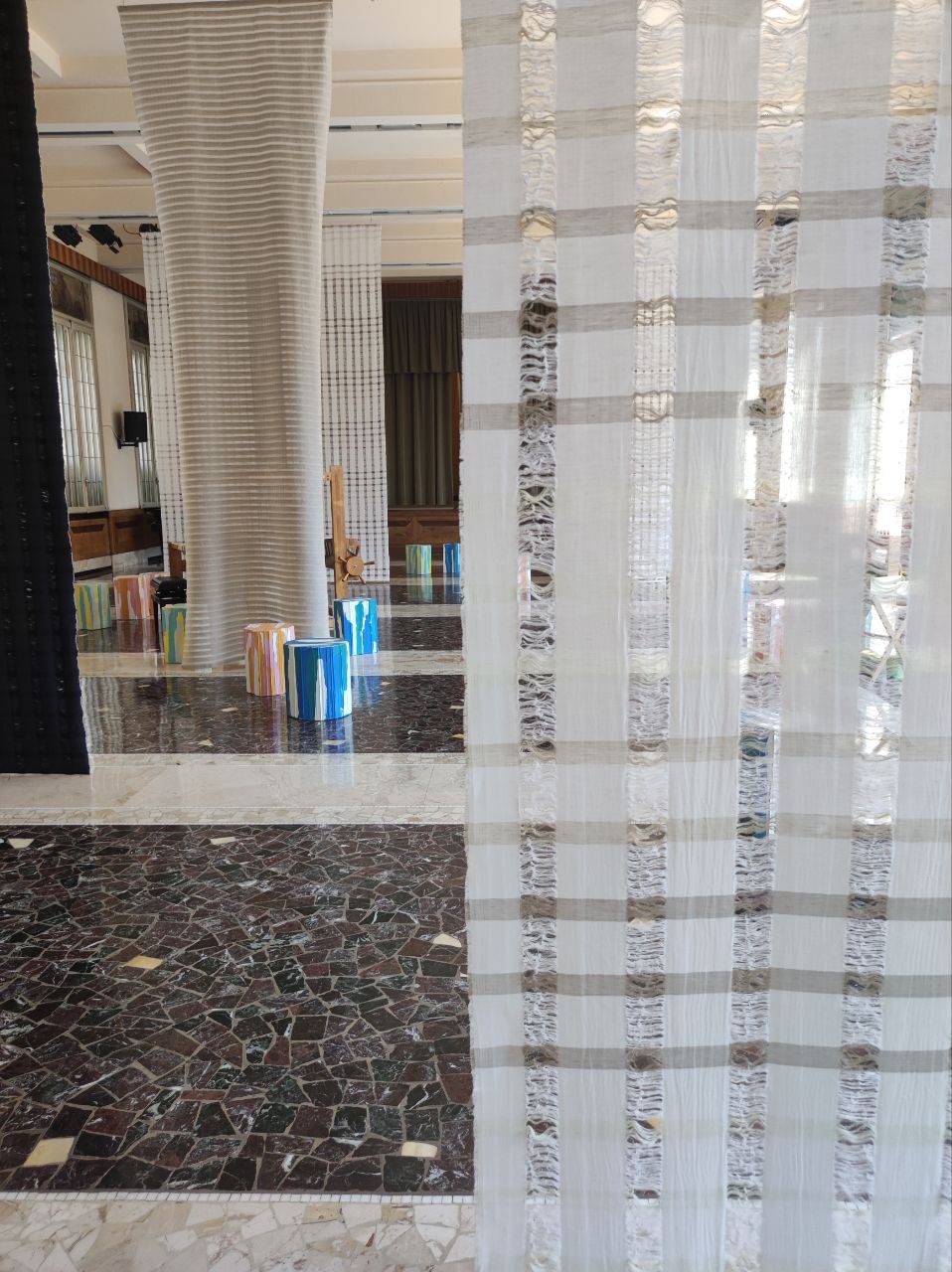 Clerici Tessuto was pleased to collaborate on the exhibition by supplying the large-scale woven fabrics used as dividers and inspired by Anni’s distinctive works created for her 1949 solo exhibition at the Museum of Modern Art in New York.