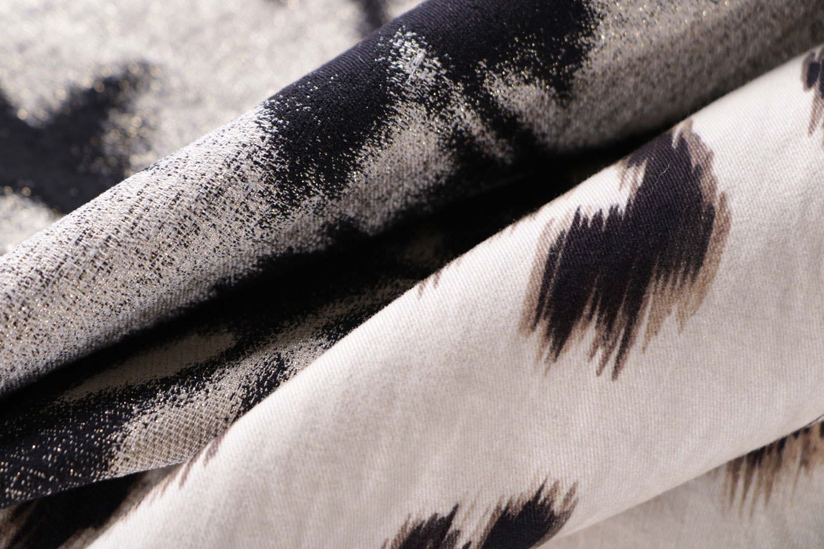 Stampe e jacquard che evocano texture animali e motivi organici, declinati in combinazioni cromatiche studiate. Un tema pensato per abiti trasversali, perfetti dal giorno alla sera.
